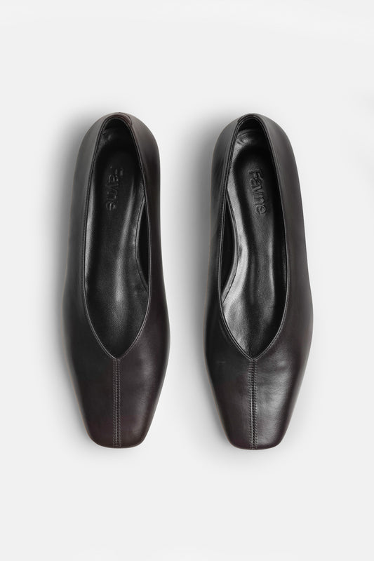 Crafted in limited runs, our shoes are minimalist, sculptural, and timeless. From the clean-lined Sculpted Mule with its rounded toe and block heel, to our signature ballerinas and modern boots, every style is made with LWG-certified Italian leather and suede—balancing comfort and intention.